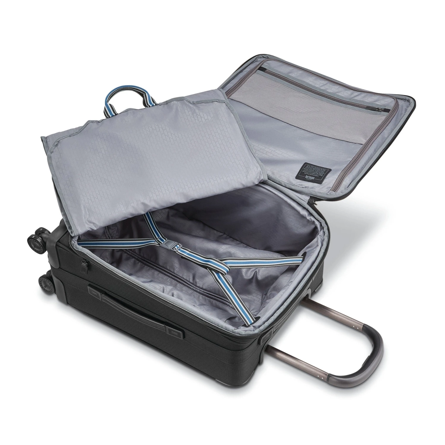 Innovative features afford the traveler modern conveniences, including USB ports and accompanying pockets to charge and stow digital devices in the Carry-on. Inside the sleek and durable ballistic nylon exterior trimmed with full grain leather is a tailored, well-organized interior accentuated with Hartmann’s signature Ducord stripe, celebrating the longstanding heritage of the brand. Padded, tri-fold garment suiters for immaculate packing, wide contoured trolley handles that adjust to the traveler’s ideal height, and triple-hardened steel cartridge bearing wheels round out Ratio 2’s well-balanced details.