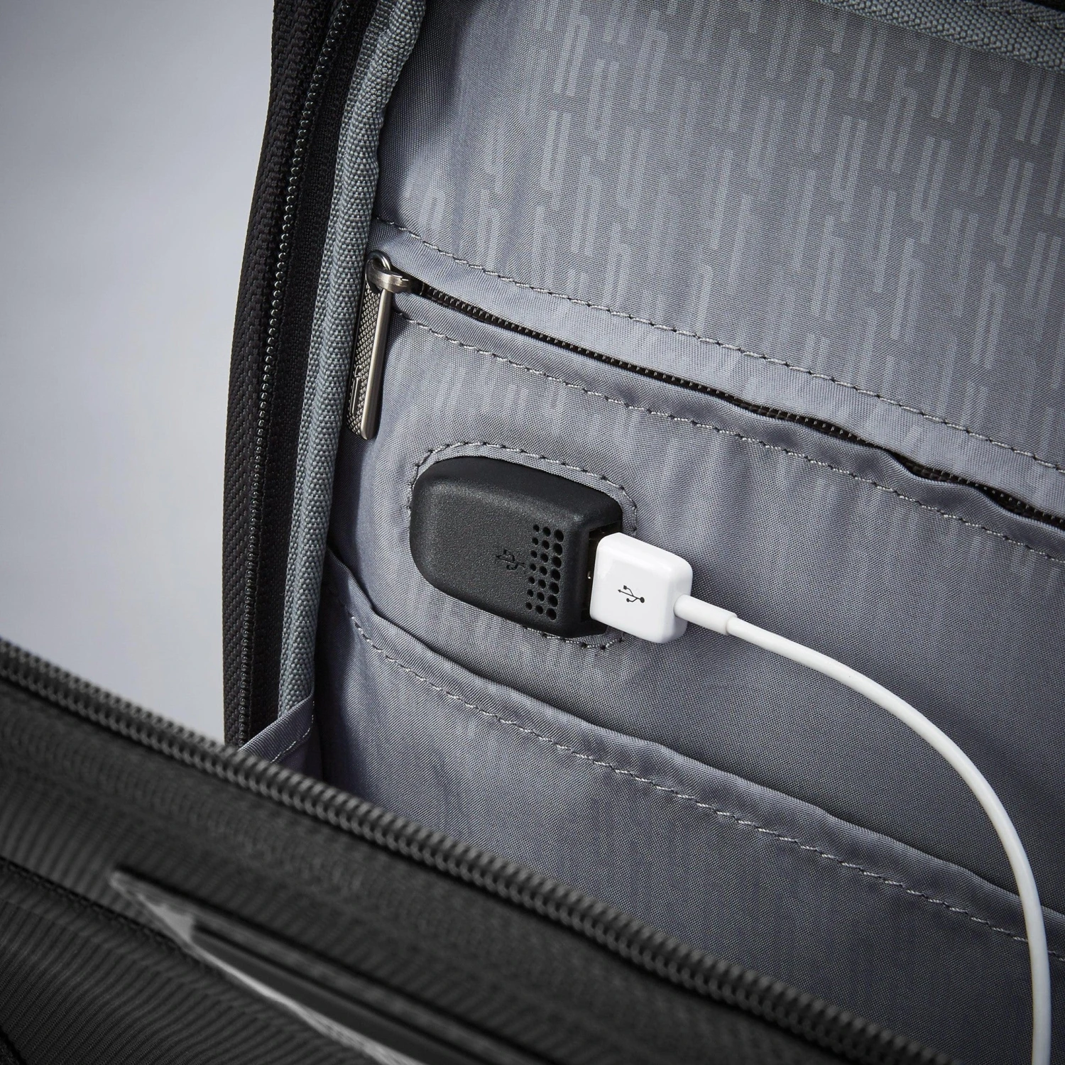 - USB port in side pocket for convenient charging when traveling
