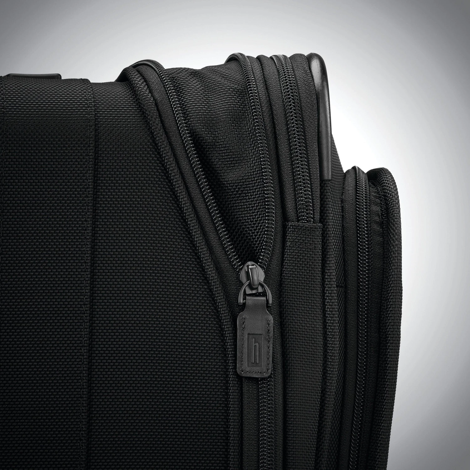 - Integrated, leather identity patch