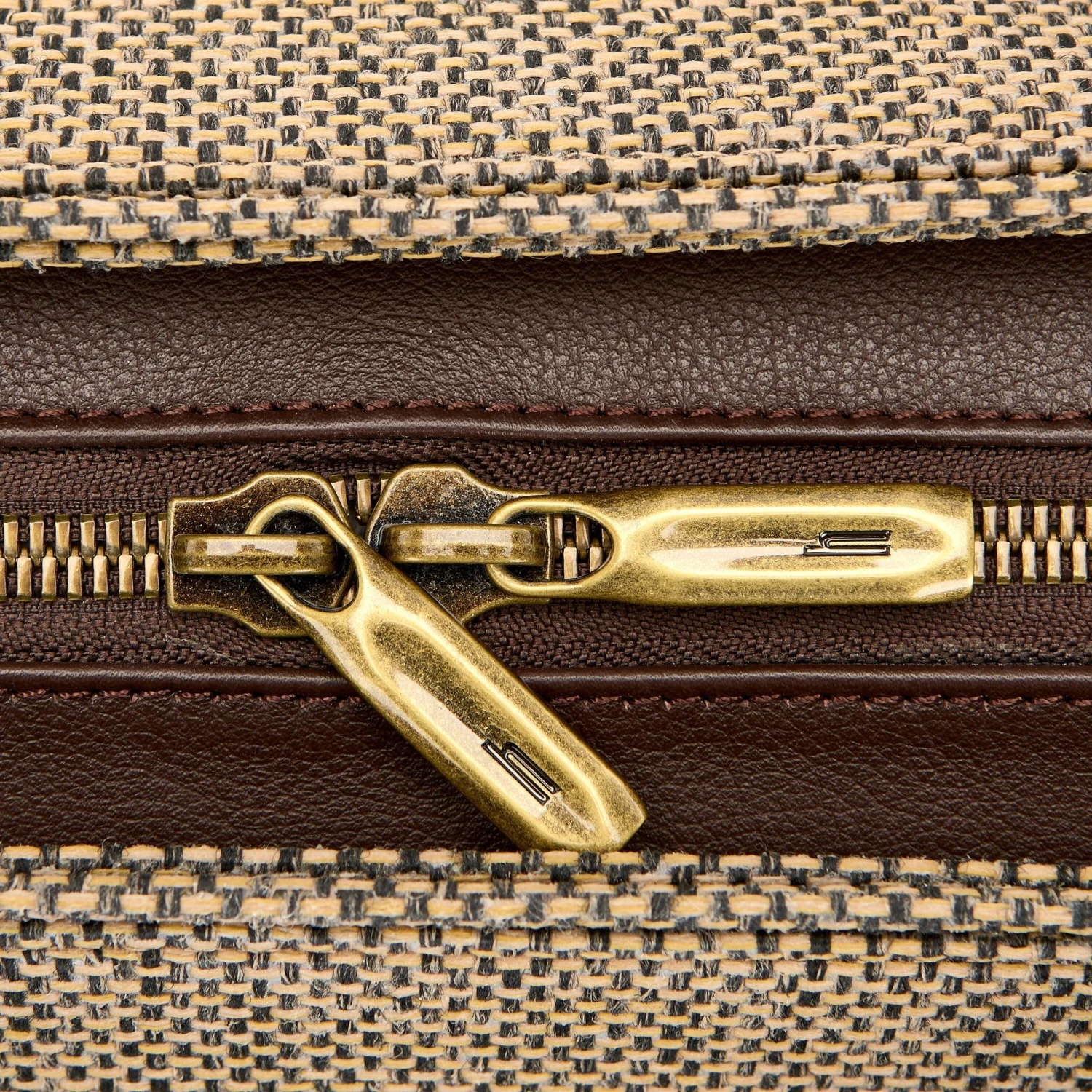 The exterior of the classic Tweed tote melds sophisticated style with contemporary design. Pebbled leather details sit atop the familiar tweed fabric treated with weather and stain resistance. The main compartment features a padded laptop sleeve with a secure zipper closure. A side compartment includes a removable RFID wristlet to keep your keys, credit cards, and phone secure, safe, and easily accessible. For a touch of added luxury, the hardware has been upgraded with a bespoke matte brass finish.