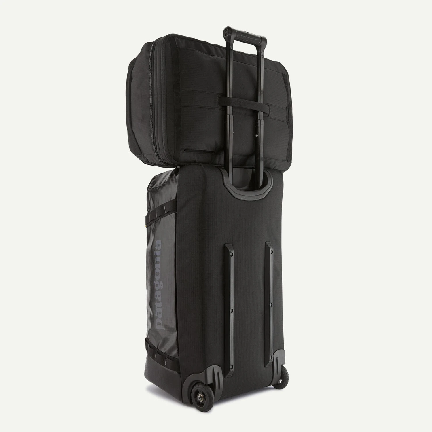 Wide webbing loop on the back panel acts as a haul handle or can be slipped over the handle of rolling luggage for easier movement through airports
