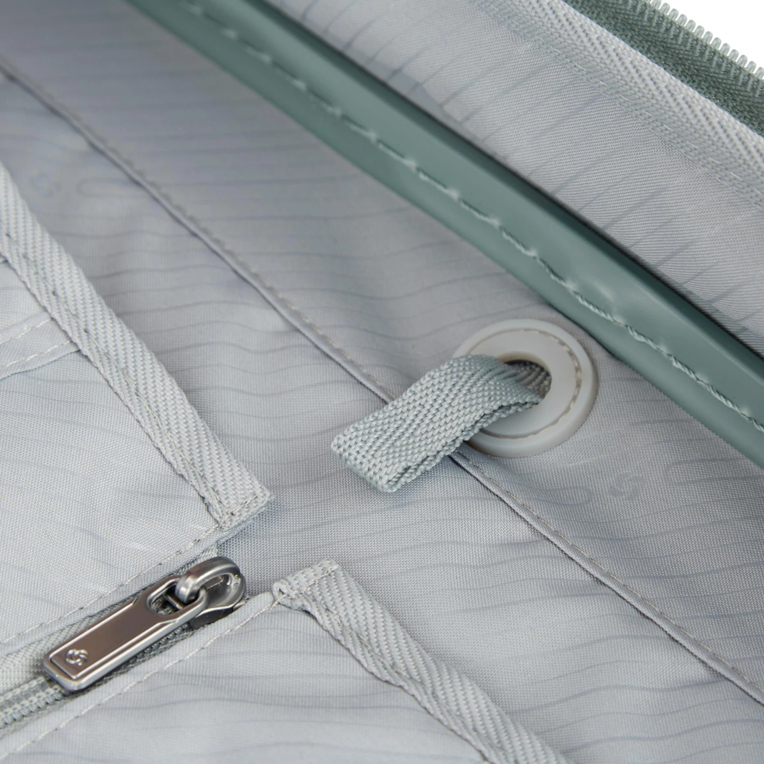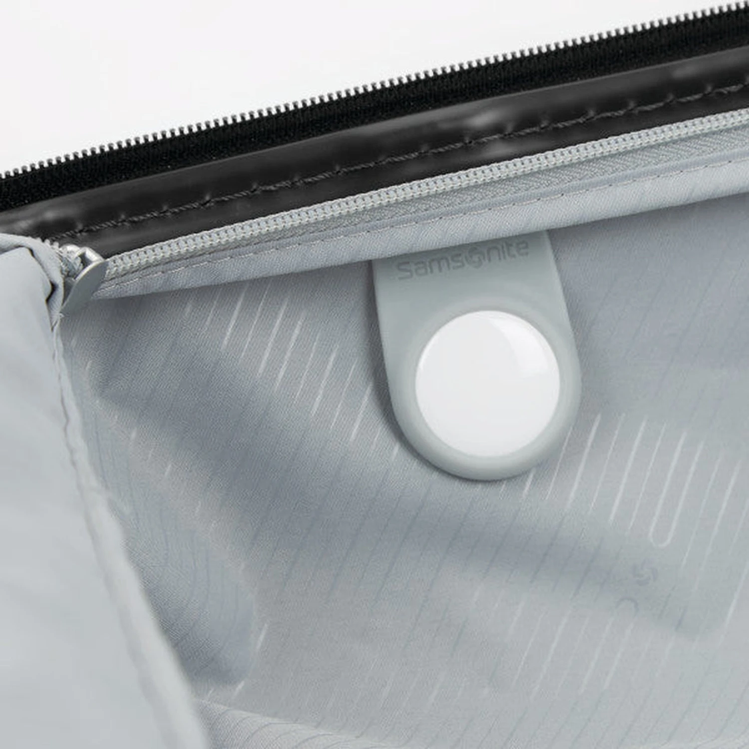 - Integrated AirTag is located subtly right behind the front compartment zipper divider.